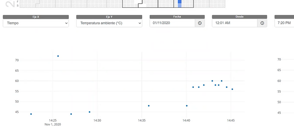 La URL inicia con “http://vehiculoselectricos.dis.eafit.edu.co/addjson?” y luego se agregan las variables, separadas por el carácter “&”. Al final de los 20 segundos, el código hace una petición GET al enlace resultante con los datos obtenidos para enviarlos a la plataforma de vehiculoselectricos.dis.eafit.edu.co, la cual procede a graficar los datos recibidos cada vez que se realiza este proceso.